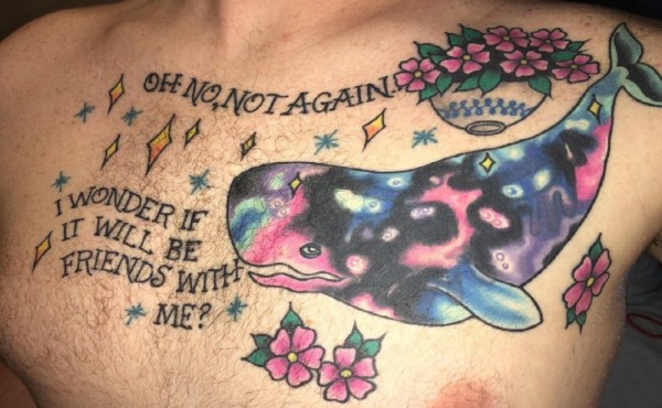 纹身鲸鱼 男生胸部鲸鱼纹身图案
