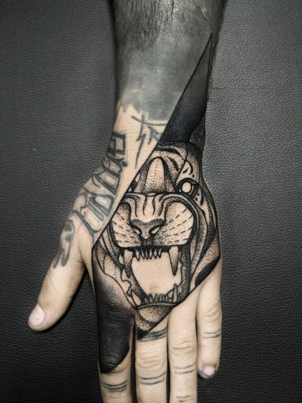 老虎图腾纹身 多款黑灰纹身点刺技巧老虎纹身图案