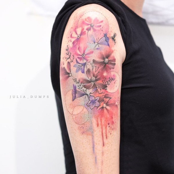 文艺花朵纹身 多款彩色渐变纹身文艺花朵纹身经典图案