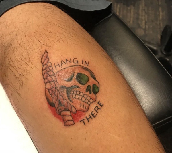 纹身骷髅头 男生大腿上骷髅纹身图片