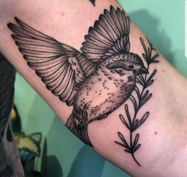 手臂纹身素材 男生手臂上植物和鸟纹身图片