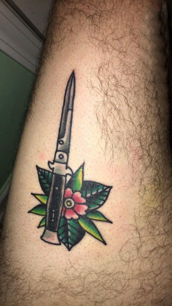 欧美匕首纹身 男生手臂上花朵纹身图片