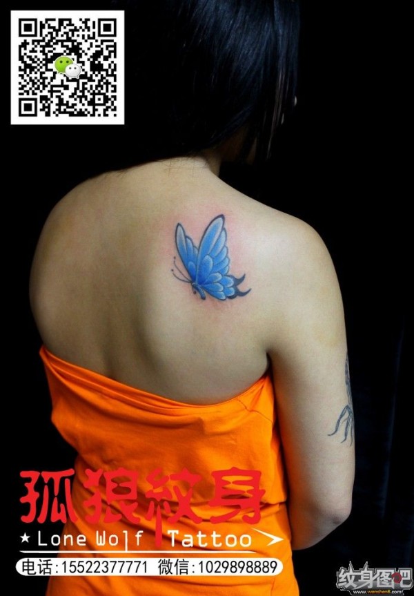 宝坻纹身 美女肩胛蝴蝶纹身 孤狼纹身工作室作品 天津