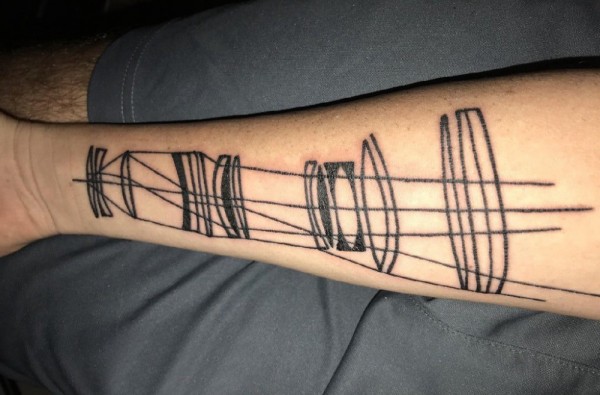 极简线条纹身 男生手臂上黑色的几何纹身图片