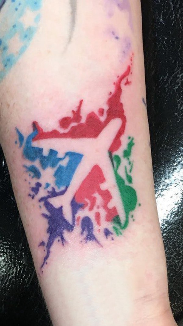 飞机纹身 女生手臂上彩色的飞机纹身图片