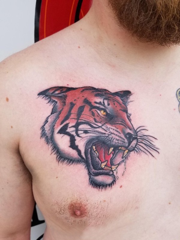 百乐动物纹身 男生胸部彩色的老虎纹身图片