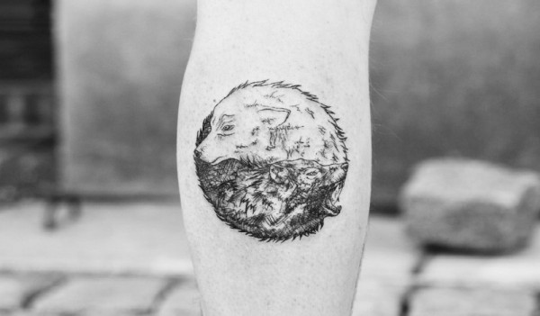 百乐动物纹身 女生小腿上黑色的狼纹身图片