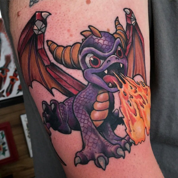 双大臂纹身 男生大臂上彩色的火龙纹身图片