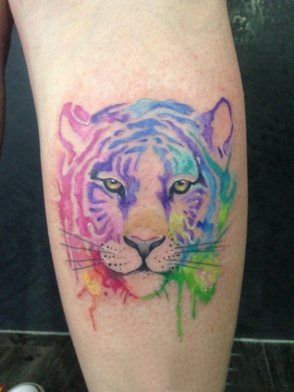 小腿对称纹身 女生小腿上彩色的狮子纹身图片