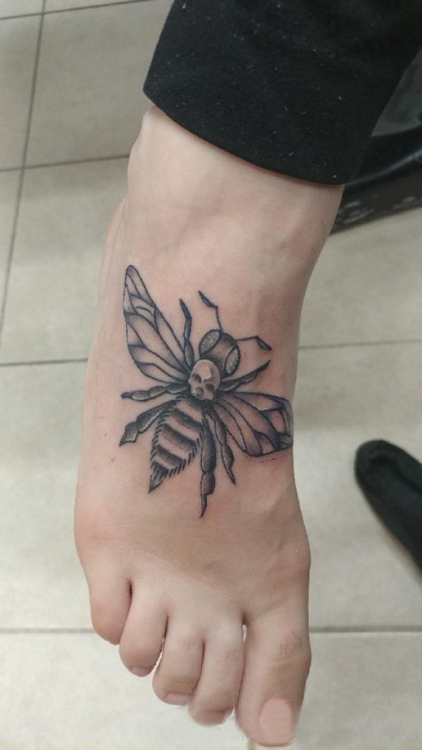 小蜜蜂纹身 女生脚部小蜜蜂纹身图片