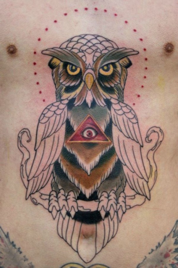 多款彩色个性的猫头鹰纹身