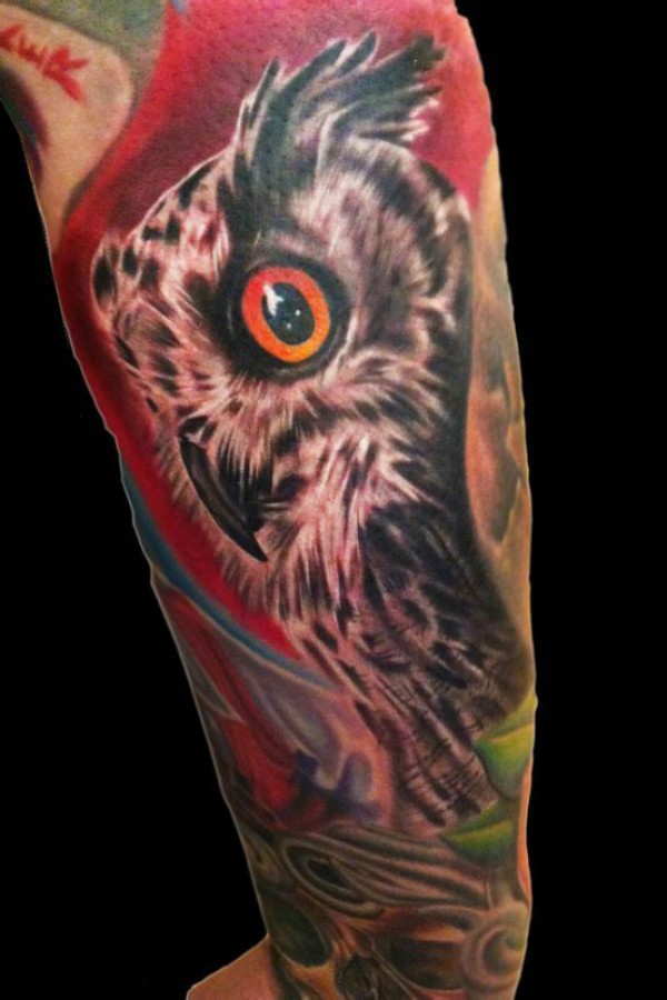 多款彩色个性的猫头鹰纹身