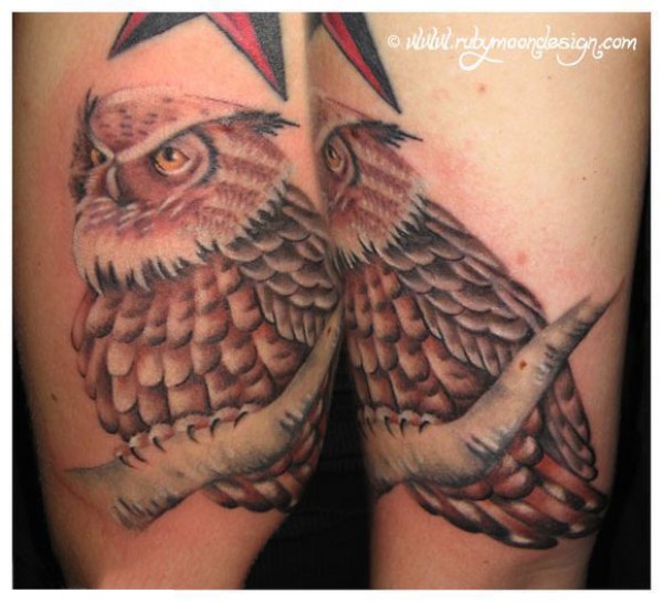 多款彩色个性的猫头鹰纹身