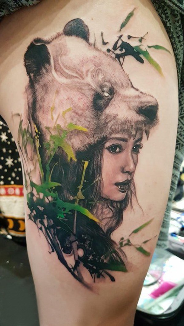 女生人物纹身图案 女生大腿上小熊猫纹身图片
