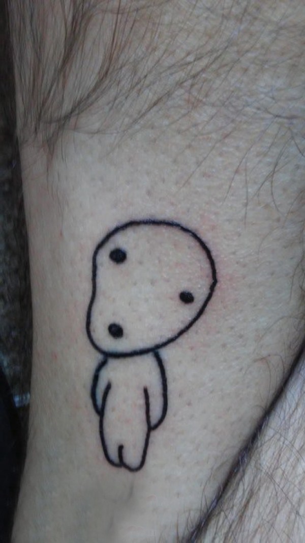 骷髅纹身 男生小腿上黑色的卡通骷髅纹身图片