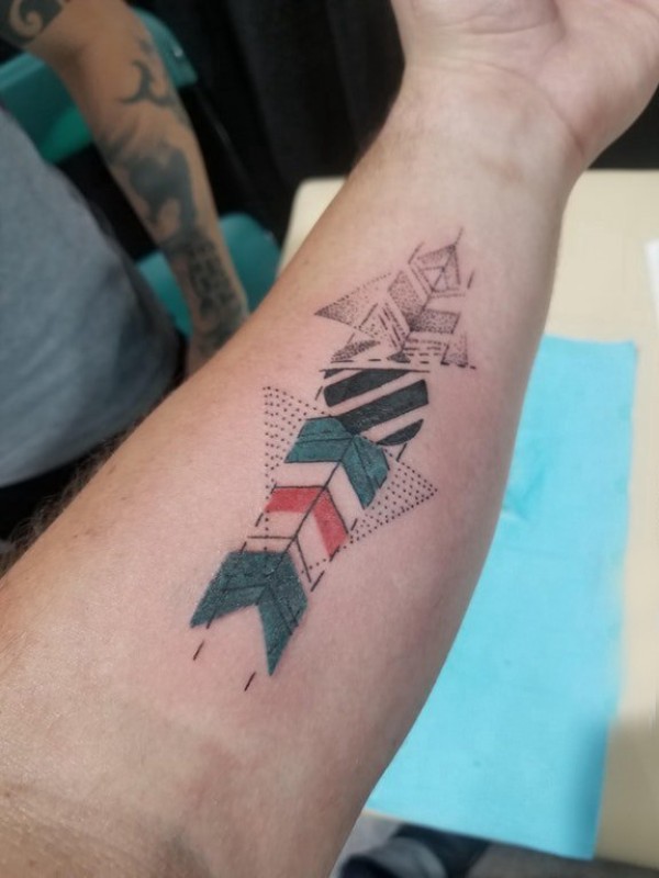 箭头纹身 男生手臂上彩色的箭头纹身图片