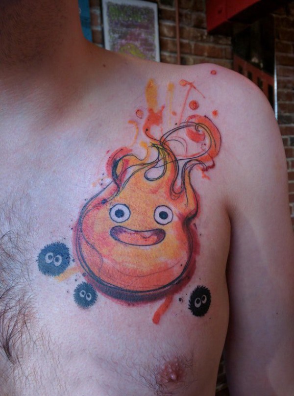 肩膀简约纹身 男生肩部彩色的火焰纹身图片