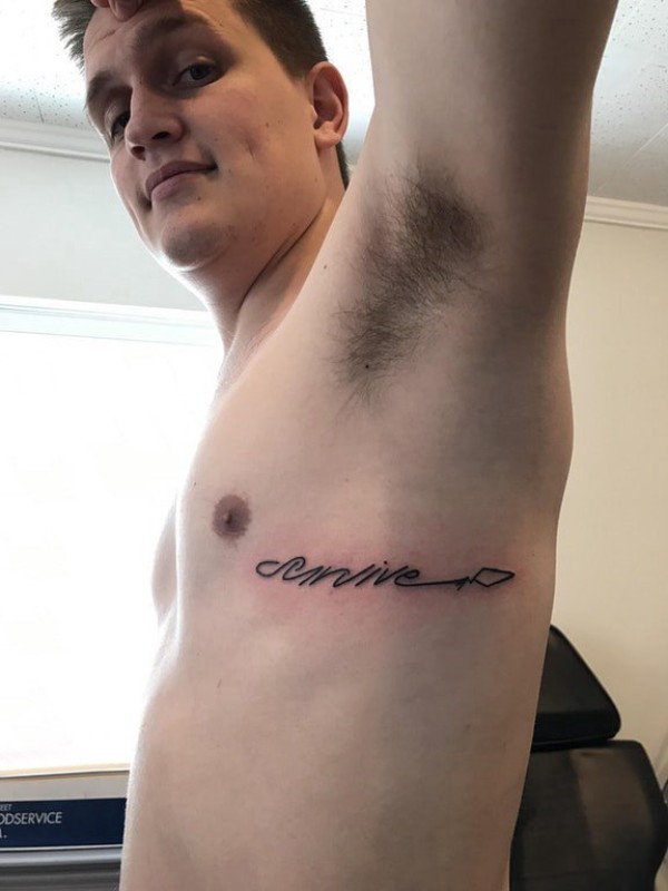 花体英文纹身 男生侧肋上花体英文纹身图案