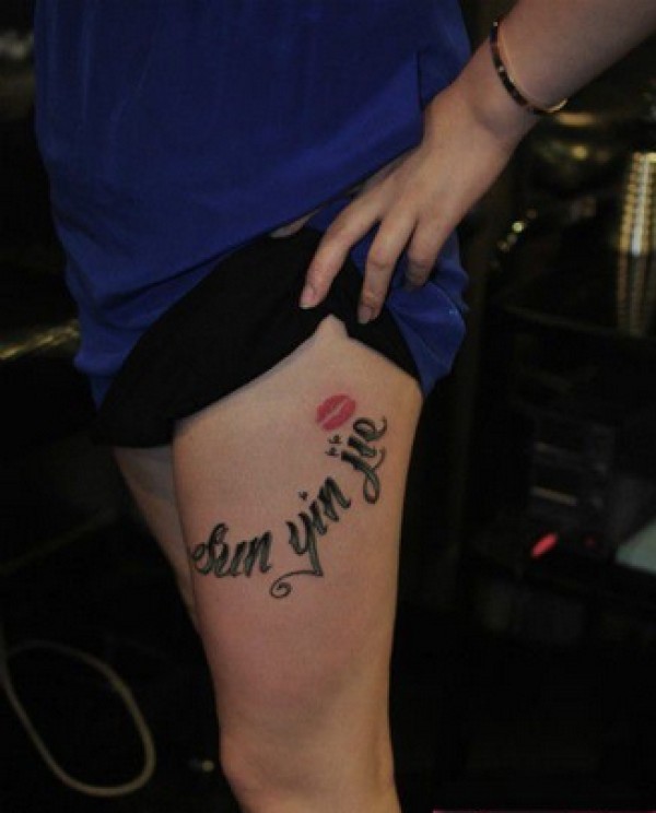 流行英文腿部纹身