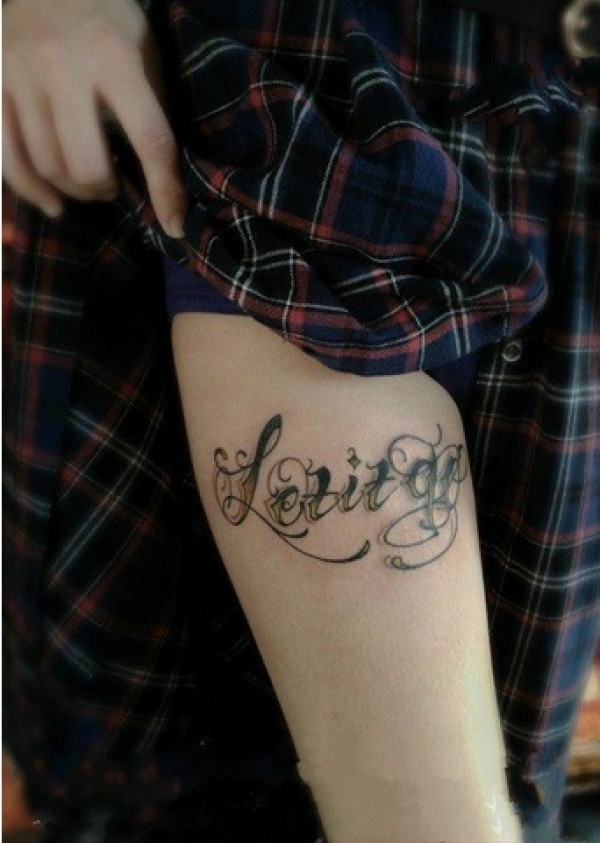 流行英文腿部纹身