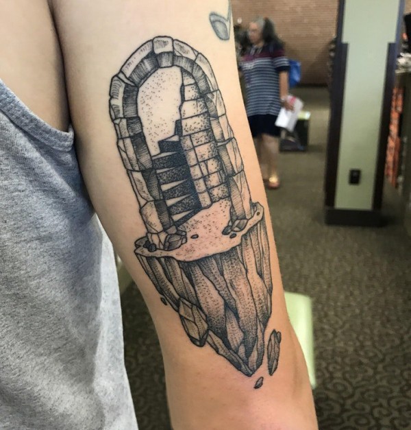 纹身黑色 男生手臂上黑色的建筑物纹身图片