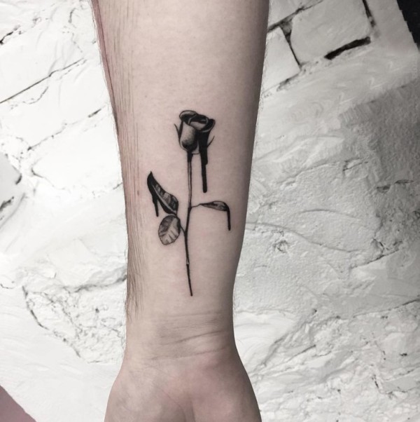 黑玫瑰纹身图 男生手臂上黑色的玫瑰纹身图片