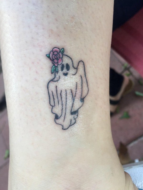 欧美小腿纹身 女生小腿上花朵和幽灵纹身图片