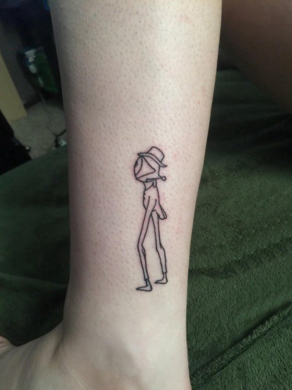 纹身卡通 女生小腿上黑色的卡通眼睛纹身图片