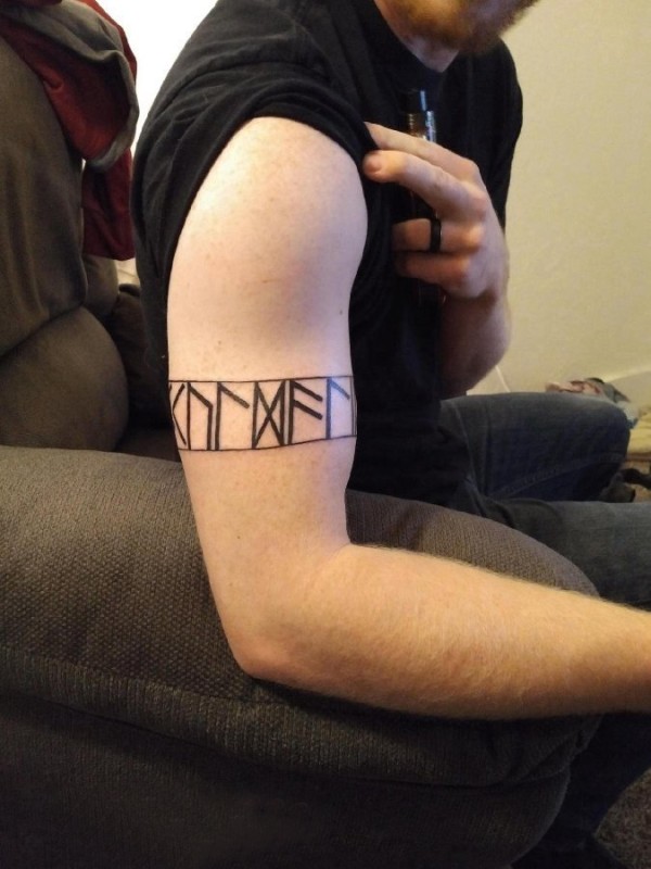 臂环纹身图案 男生手臂上黑色的臂环纹身图片