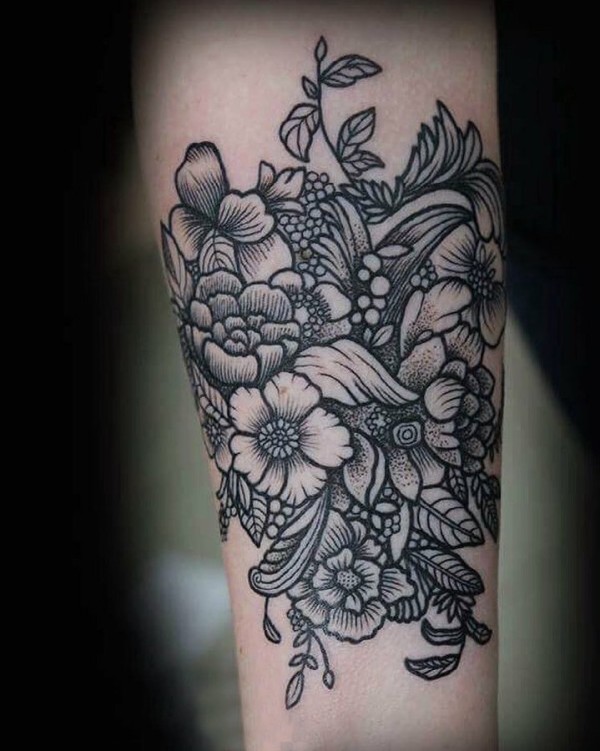 文艺花朵纹身 女生手臂上黑灰纹身花朵纹身图案