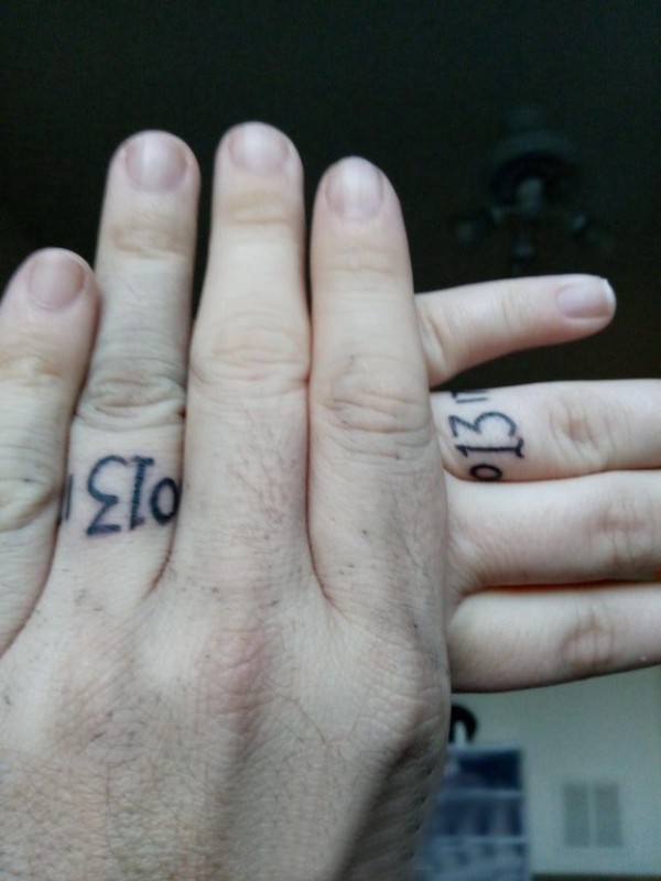 情侣纹身戒指 情侣手指上黑色的数字戒指纹身图片
