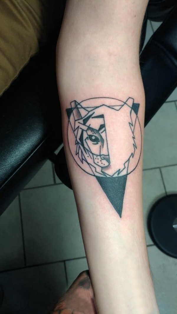 几何动物纹身 女生手臂上黑色的几何动物纹身图片