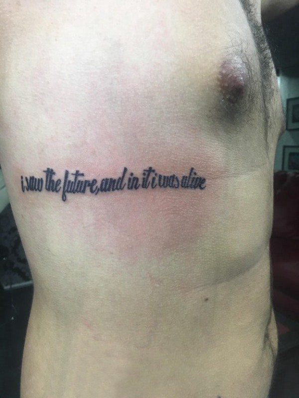 花体英文纹身 男生侧肋上英文短句纹身图片