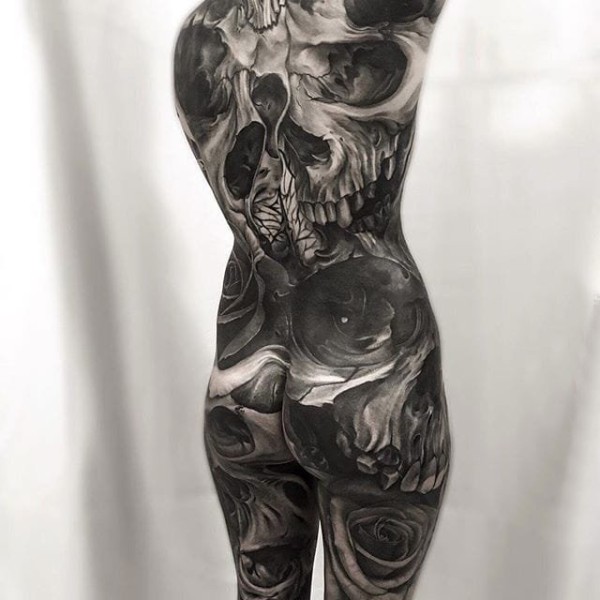 黑灰纹身 多款黑灰纹身点刺技巧恐怖纹身图案