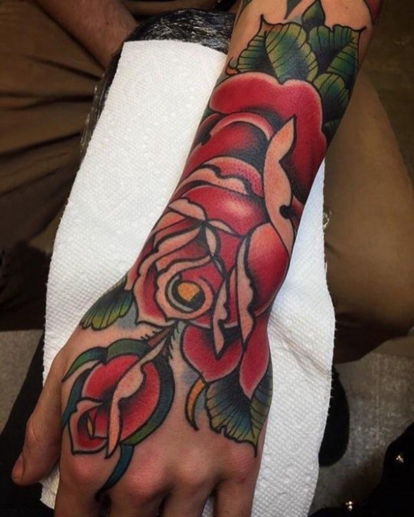 欧美玫瑰纹身 男生手臂上花朵纹身图片