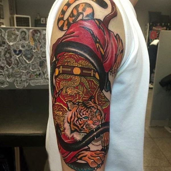 霸气半胛老虎纹身_动物纹身图案大全_纹身图吧