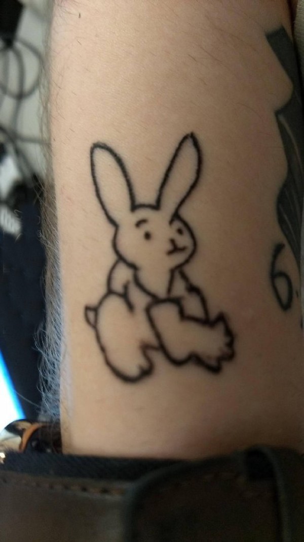 纹身卡通 男生手臂上黑色的兔子纹身图片