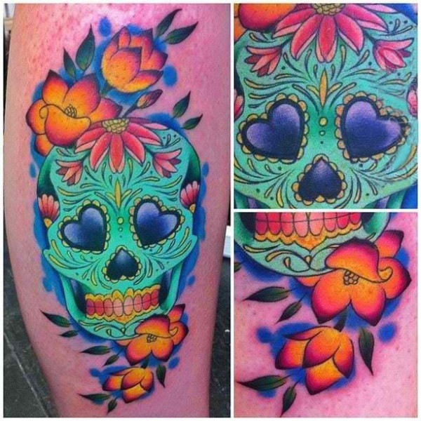 骷髅头纹身 多款彩绘纹身花朵骷髅头纹身图案