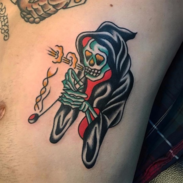 侧腰女骷髅刺青图案图片_骷髅纹身图案大全_纹身图吧