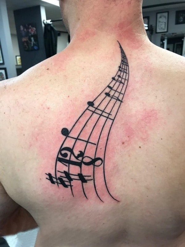 纹身音符图案 男生后背上黑色的音符纹身图片