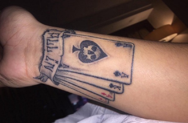 欧美手腕纹身 男生手腕上黑色的扑克牌纹身图片