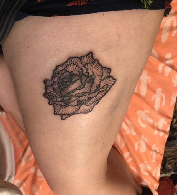 大腿纹身传统 女生大腿上黑色的玫瑰纹身图片