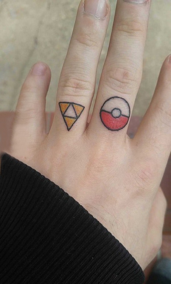 简约手指纹身 男生手指上三角形和圆形纹身图片