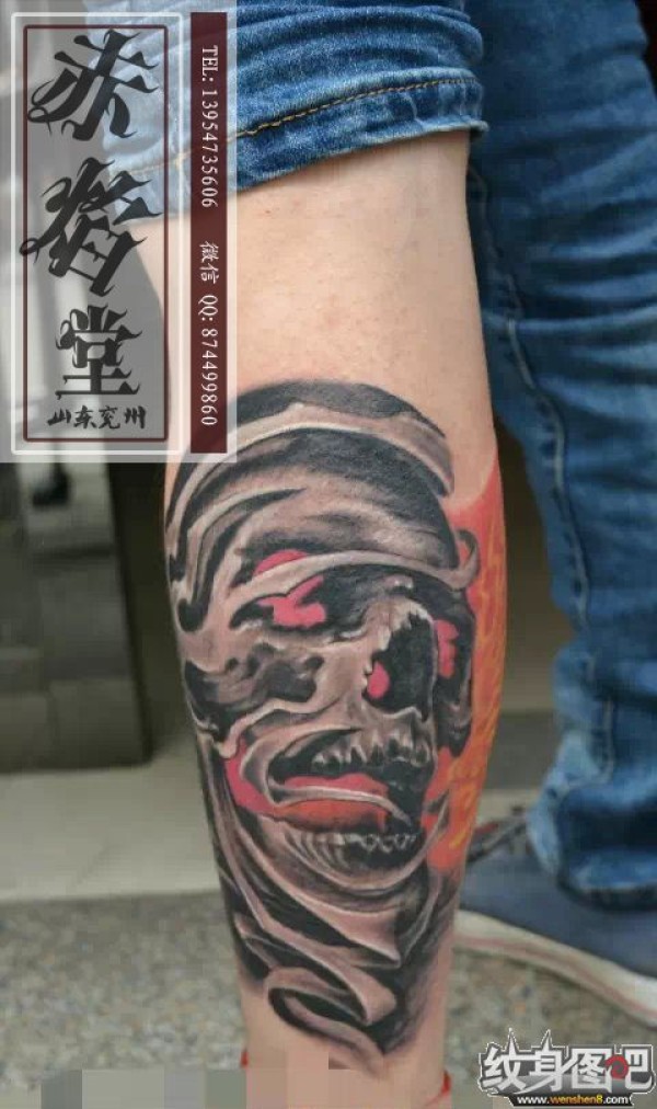 男生小腿死神纹身_腿部纹身图案大全_纹身图吧