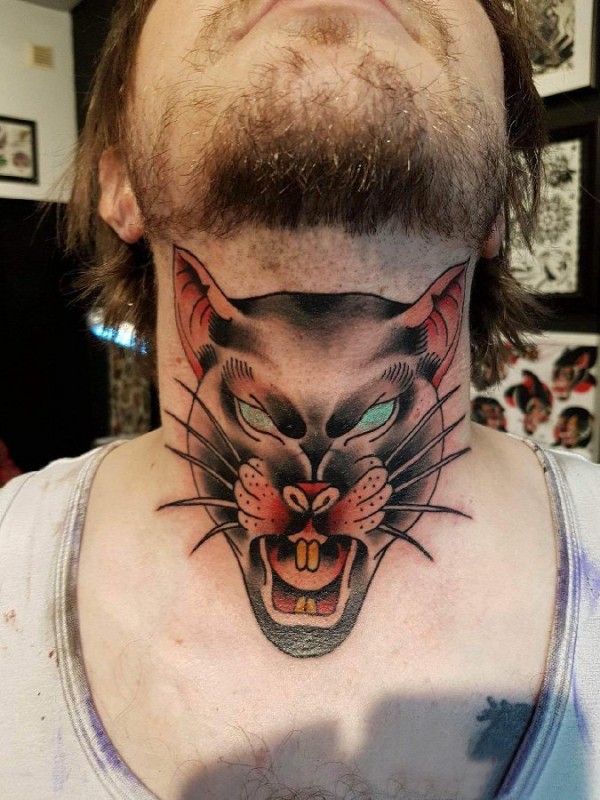 百乐动物纹身 男生颈部彩色的动物纹身图片