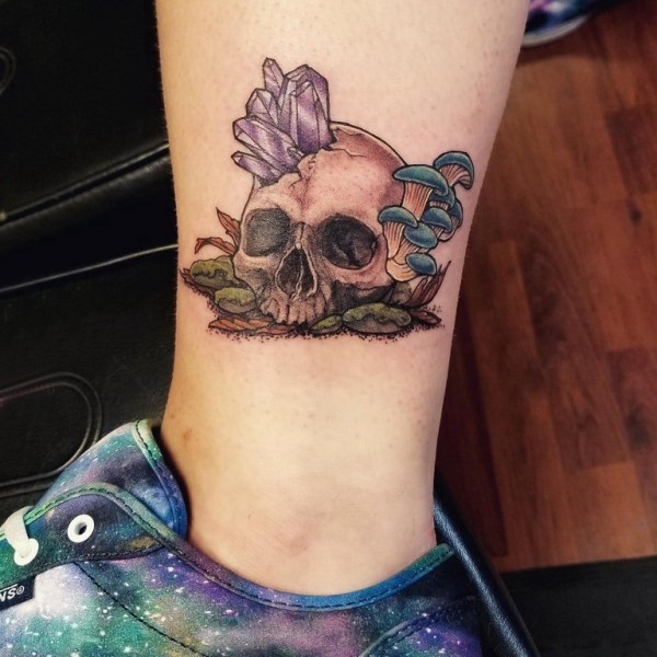 脚踝骨纹身 女生脚踝上晶石和骷髅纹身图片