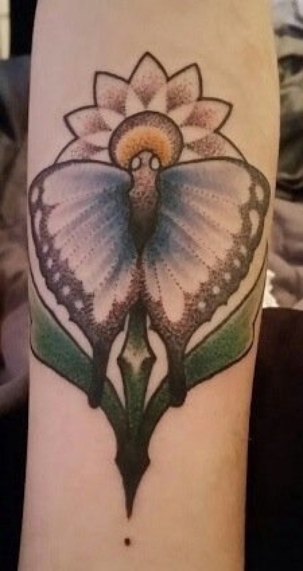 蝴蝶花朵纹身图案 女生手臂上蝴蝶花朵纹身图案