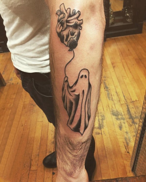 手臂纹身素材 男生手臂上心脏和幽灵纹身图片