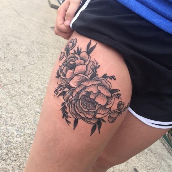 文艺花朵纹身 女生大腿上花朵纹身图片