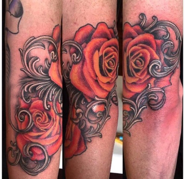 欧美玫瑰纹身 男生手臂上花朵纹身图片